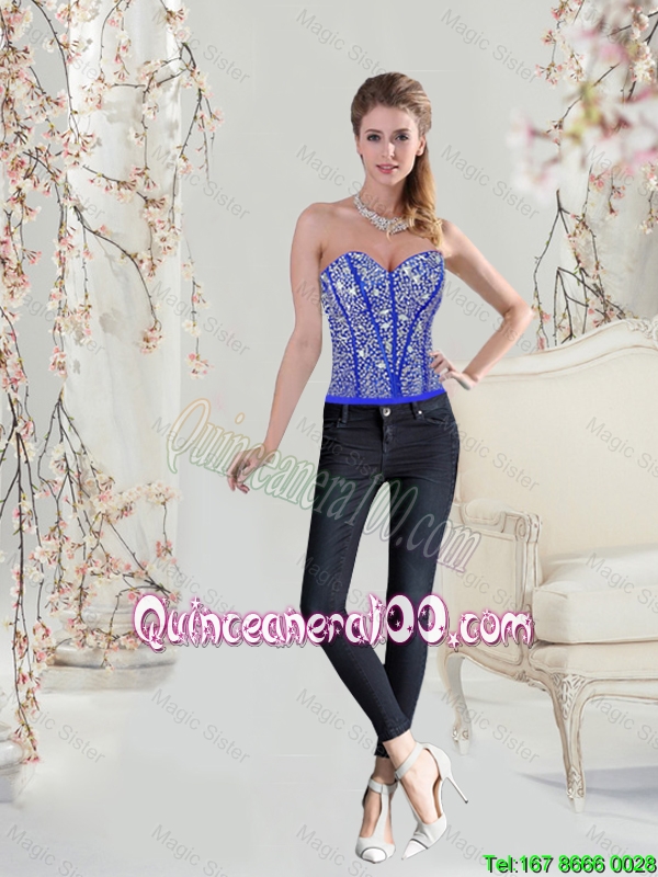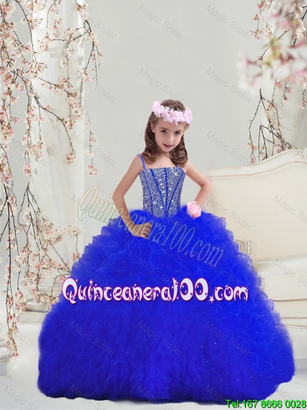 2016 Summer Detachable Beaded and Ruffles Sweetheart Wonderful Sweet 16 Dresses in Royal Blue