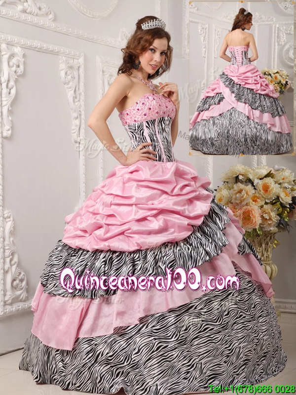 Neckline : StraplessShown Color : Multi-colorSleeve Length : sleevelessHemline : floor lengthBack Detail : Lace upFabric : Taffeta,PrintedEmbellishment : BeadingOccasion : Military Ball,Sweet 16,QuinceaneraSeason : Spring,Summer,Fall,Winter