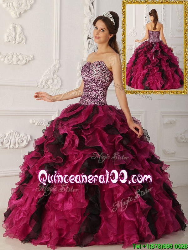 Neckline : SweetheartShown Color : Multi-colorSilhouette : Ball GownsSleeve Length : sleevelessHemline : floor lengthBack Detail : Lace upFabric : OrganzaEmbellishment : RufflesOccasion : Military Ball,QuinceaneraSeason : Spring,Summer,Fall,Winter