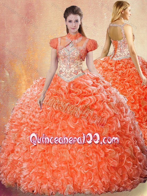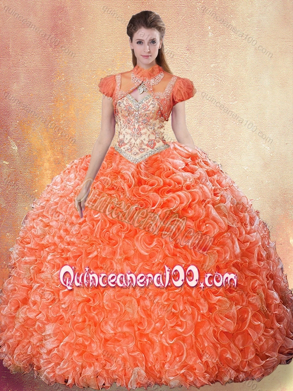 Neckline : StrapsShown Color : Orange RedSleeve Length : sleevelessHemline : with trainBack Detail : BacklessFabric : OrganzaEmbellishment : Beading,RufflesOccasion : Military Ball,Sweet 16,QuinceaneraSeason : Spring,Summer,Fall,Winter