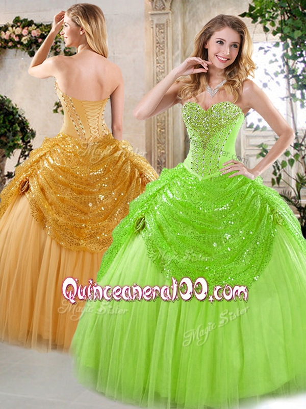 Neckline : SweetheartShown Color : Spring Green,ChampagneSilhouette : Ball GownsSleeve Length : sleevelessHemline : floor lengthBack Detail : Lace upFabric : TulleEmbellishment : BeadingOccasion : Military Ball,Sweet 16,QuinceaneraSeason : Spring,Summer,Fall,Winter