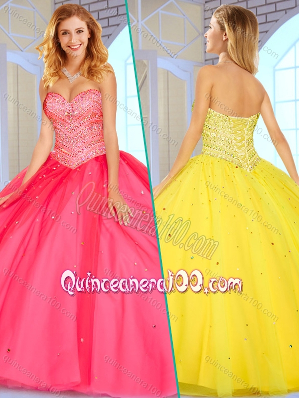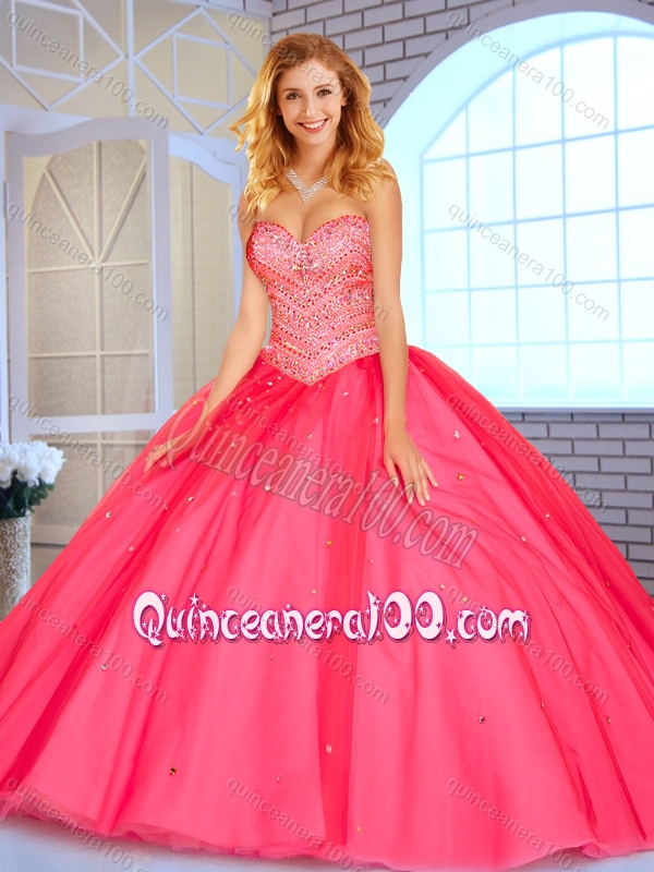Neckline : SweetheartShown Color : Hot PinkSleeve Length : sleevelessHemline : floor lengthBack Detail : Lace upFabric : TulleEmbellishment : BeadingOccasion : Military Ball,Sweet 16,QuinceaneraSeason : Spring,Summer,Fall,Winter