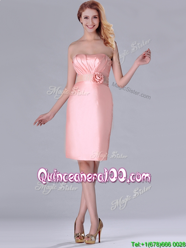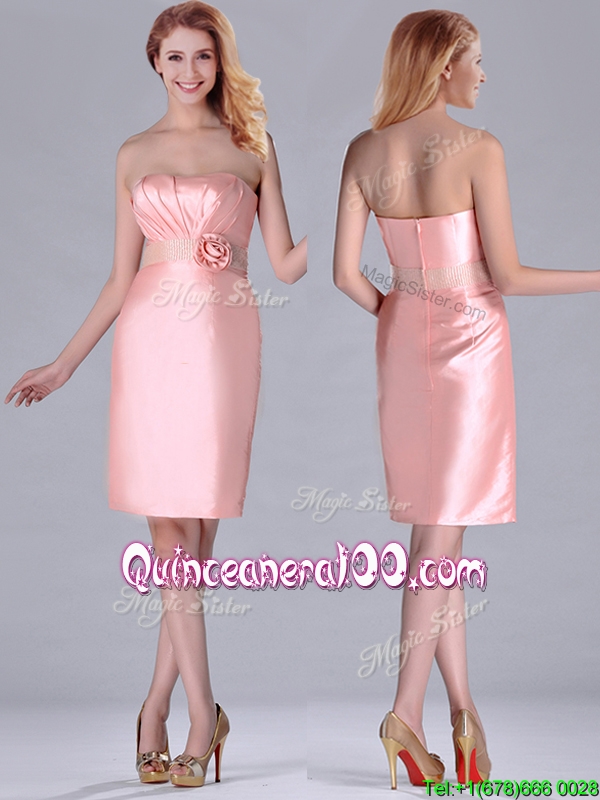 Neckline : StraplessShown Color : PinkSilhouette : Column/SheathSleeve Length : sleevelessHemline : knee lengthBack Detail : ZipperFabric : TaffetaEmbellishment : BeadingOccasion : Prom,PartySeason : Spring,Summer,Fall