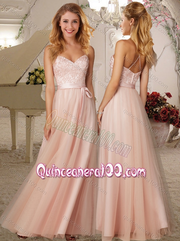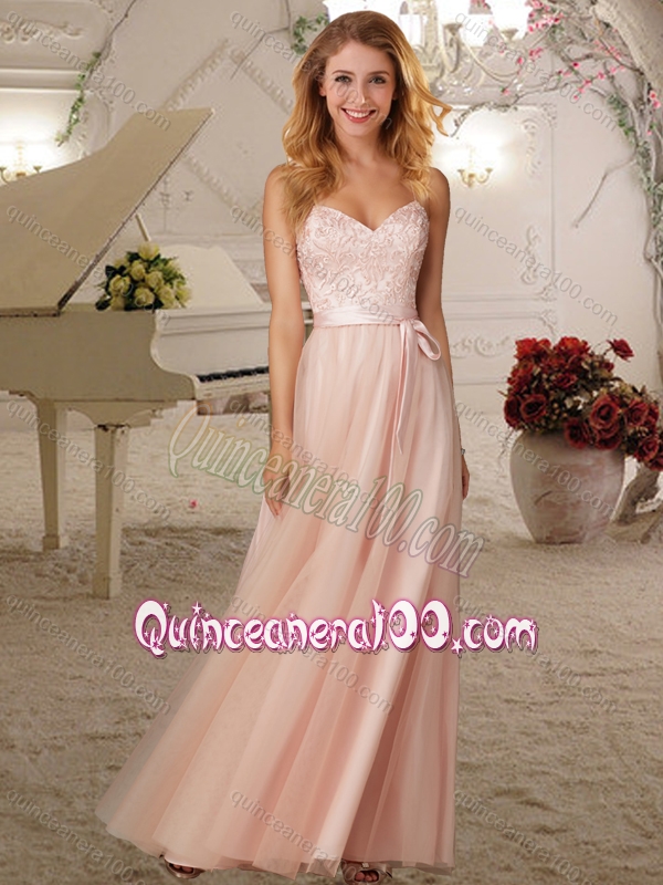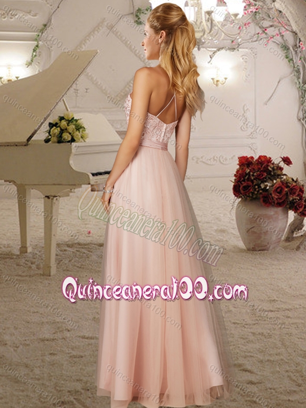 Neckline : Spaghetti strapsShown Color : Baby PinkSleeve Length : sleevelessHemline : floor lengthBack Detail : Criss crossFabric : TulleEmbellishment : Appliques,BeltOccasion : Prom,PartySeason : Spring,Summer