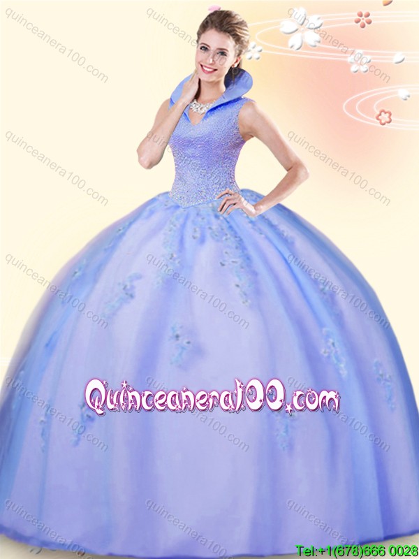 Neckline : High-neckShown Color : LavenderSleeve Length : sleevelessHemline : floor lengthBack Detail : BacklessFabric : TulleEmbellishment : Beading,AppliquesOccasion : Military Ball,Sweet 16,QuinceaneraSeason : Spring,Summer,Fall,Winter