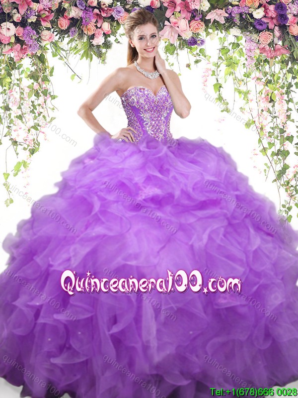 Neckline : SweetheartShown Color : Eggplant PurpleSilhouette : Ball GownsSleeve Length : sleevelessHemline : floor lengthBack Detail : Lace upFabric : OrganzaEmbellishment : Beading,RufflesOccasion : Military Ball,Sweet 16,QuinceaneraSeason : Spring,Summer,Fall,Winter