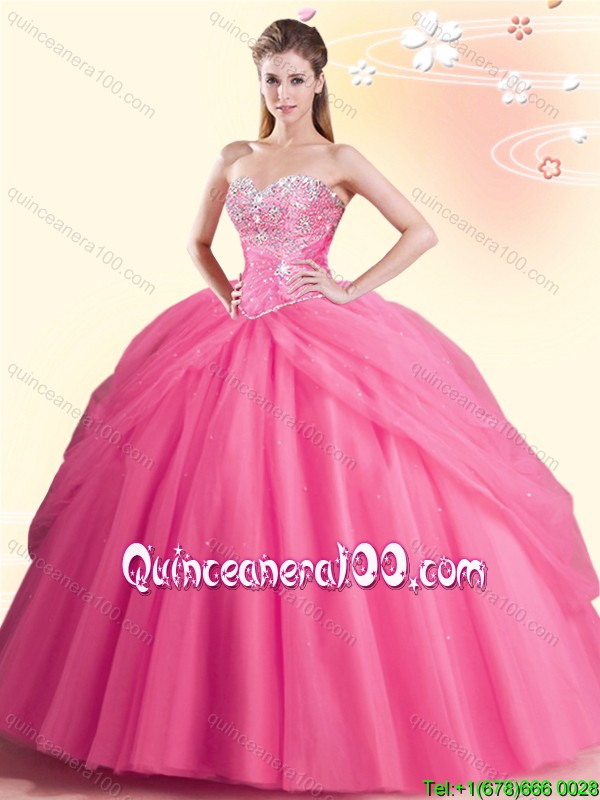 Neckline : SweetheartShown Color : Watermelon RedSilhouette : Ball GownsSleeve Length : sleevelessHemline : floor lengthBack Detail : Lace upFabric : TulleEmbellishment : BeadingOccasion : Military Ball,Sweet 16,QuinceaneraSeason : Spring,Summer,Fall,Winter