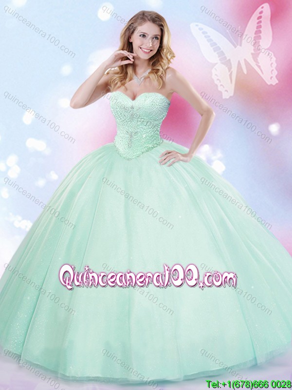 Neckline : SweetheartShown Color : Apple GreenSilhouette : Ball GownsSleeve Length : sleevelessHemline : floor lengthBack Detail : Lace upFabric : TulleEmbellishment : BeadingOccasion : Military Ball,Sweet 16,QuinceaneraSeason : Spring,Summer,Fall,Winter