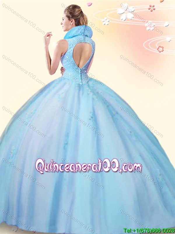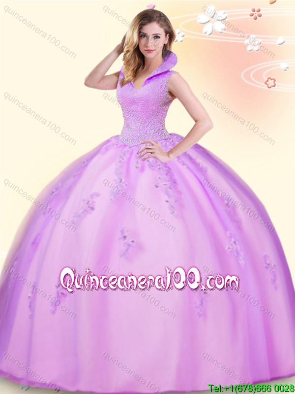 Neckline : High-neckShown Color : LilacSleeve Length : sleevelessHemline : floor lengthBack Detail : BacklessFabric : TulleEmbellishment : Beading,AppliquesOccasion : Military Ball,Sweet 16,QuinceaneraSeason : Spring,Summer,Fall,Winter