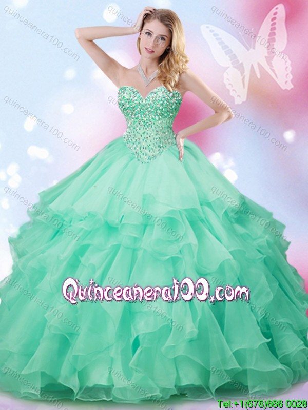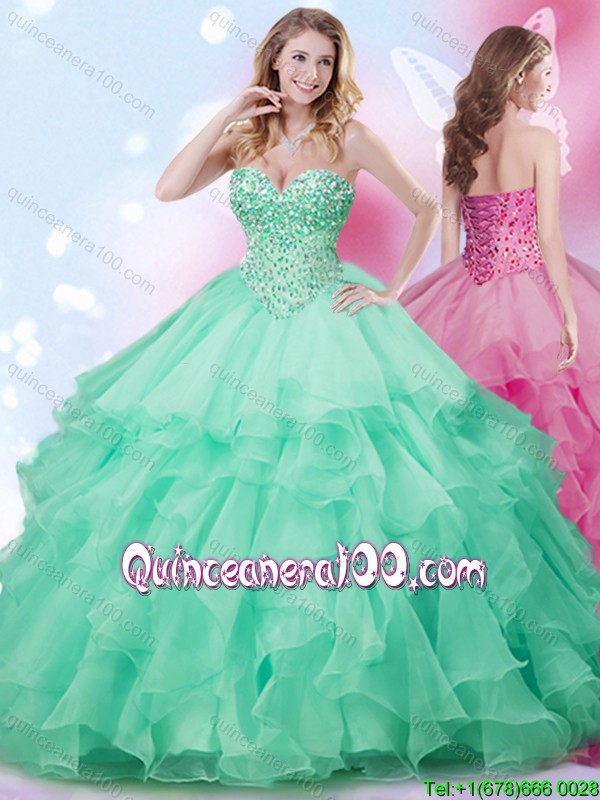 Neckline : SweetheartShown Color : Apple GreenSilhouette : Ball GownsSleeve Length : sleevelessHemline : floor lengthBack Detail : Lace upFabric : OrganzaEmbellishment : BeadingOccasion : Sweet 16,QuinceaneraSeason : Spring,Summer,Fall,Winter
