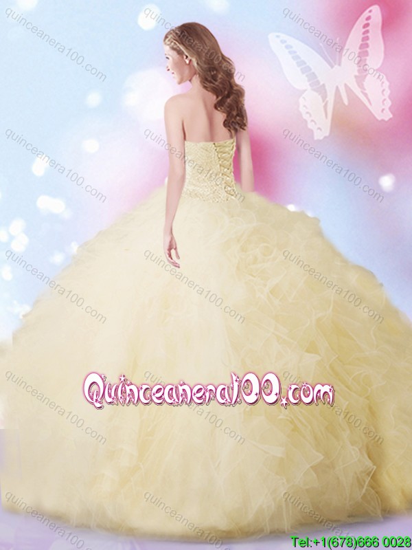 Neckline : SweetheartShown Color : ChampagneSilhouette : Ball GownsSleeve Length : sleevelessHemline : floor lengthBack Detail : Lace upFabric : TulleEmbellishment : Beading,RufflesOccasion : Military Ball,Sweet 16,QuinceaneraSeason : Spring,Summer,Fall,Winter