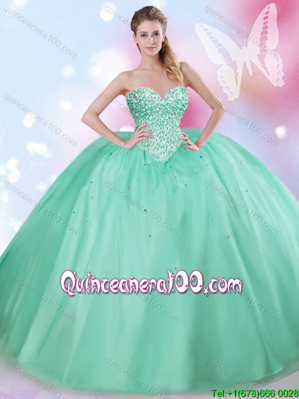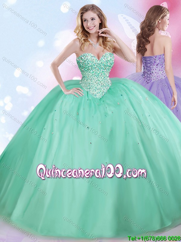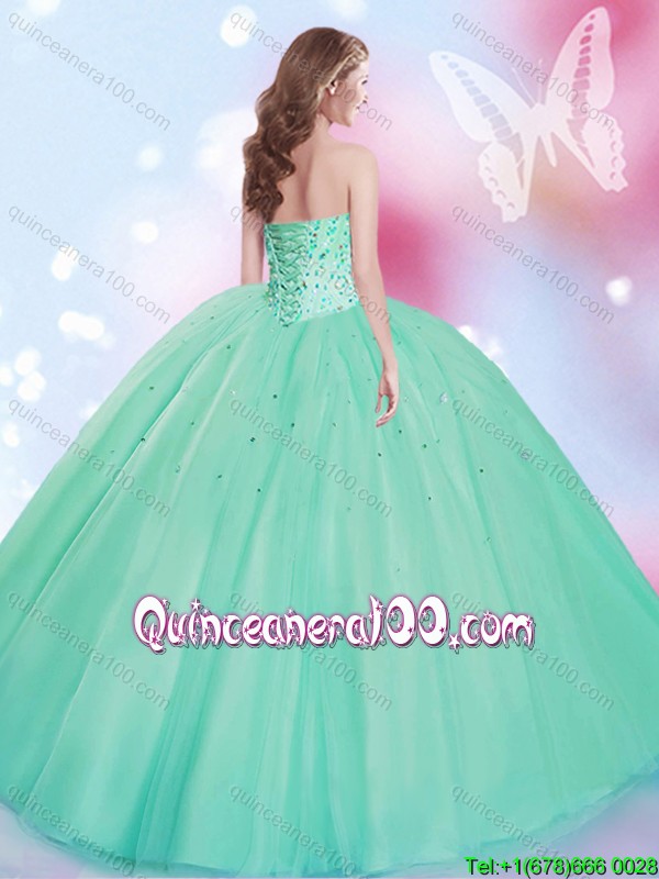 Neckline : SweetheartShown Color : Apple GreenSilhouette : Ball GownsSleeve Length : sleevelessHemline : floor lengthBack Detail : Lace upFabric : TulleEmbellishment : BeadingOccasion : Military Ball,Sweet 16,QuinceaneraSeason : Spring,Summer,Fall,Winter
