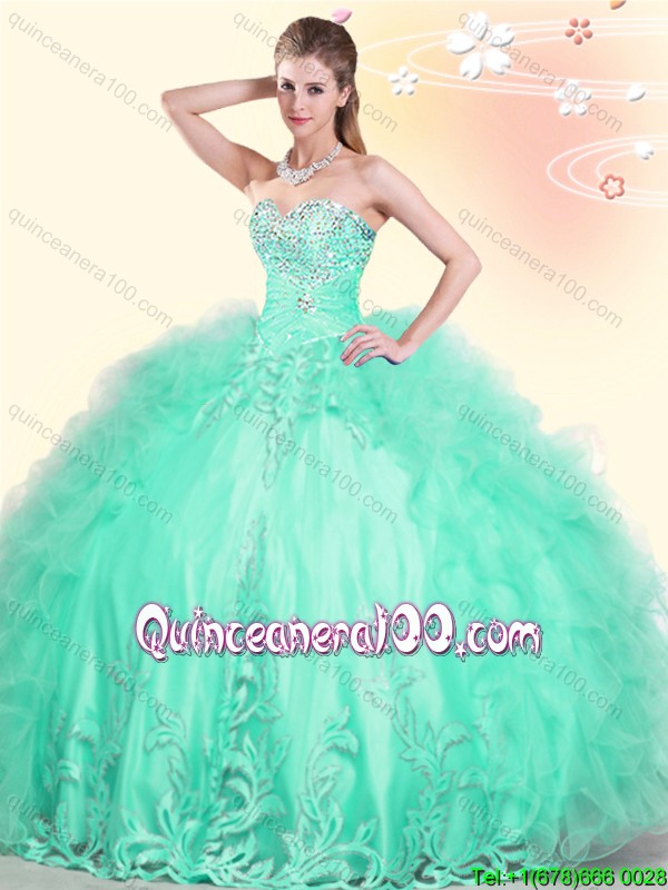 Discount Ruffled and Beaded Big Puffy Quinceanera Dress in Apple Green