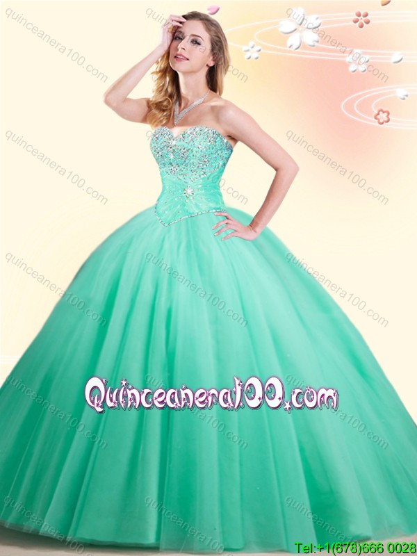 Neckline : SweetheartShown Color : Apple GreenSleeve Length : sleevelessHemline : floor lengthBack Detail : Lace upFabric : TulleEmbellishment : Beading,RufflesOccasion : Sweet 16,QuinceaneraSeason : Spring,Summer,Fall,Winter