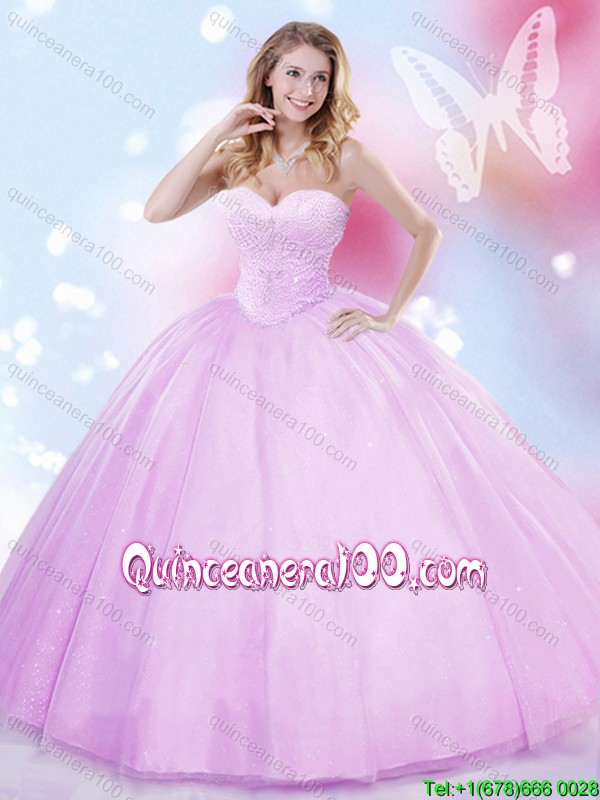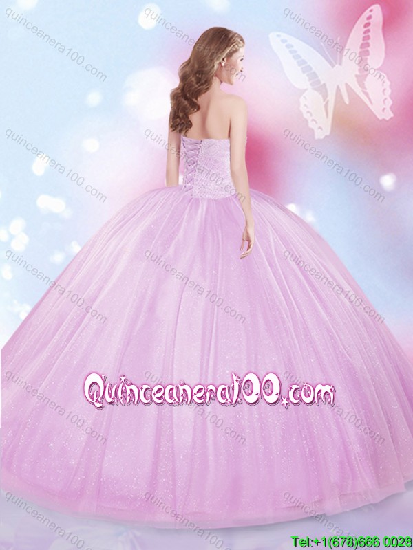Romantic Beaded Lilac Big Puffy Sweet 16 Dress in Tulle