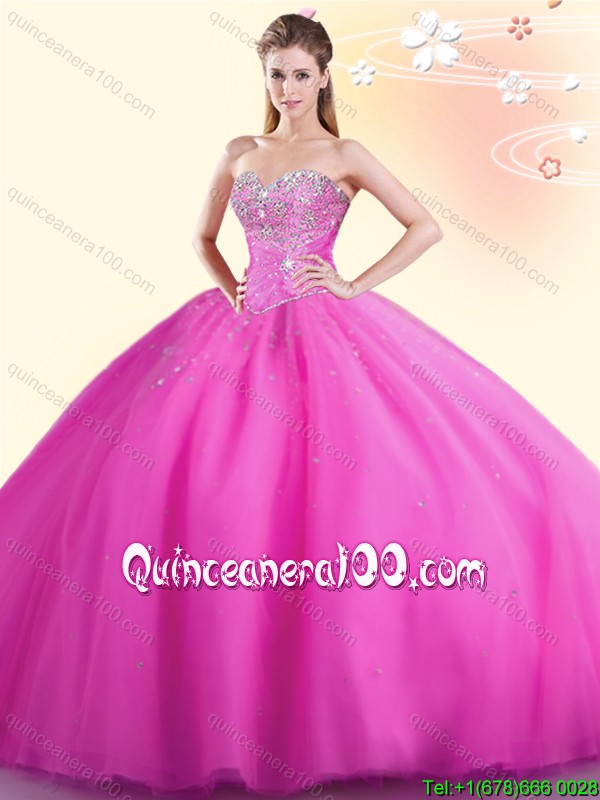 Neckline : SweetheartShown Color : Hot PinkSleeve Length : sleevelessHemline : floor lengthBack Detail : Lace upFabric : TulleEmbellishment : BeadingOccasion : Military Ball,Sweet 16,QuinceaneraSeason : Spring,Summer,Fall,Winter
