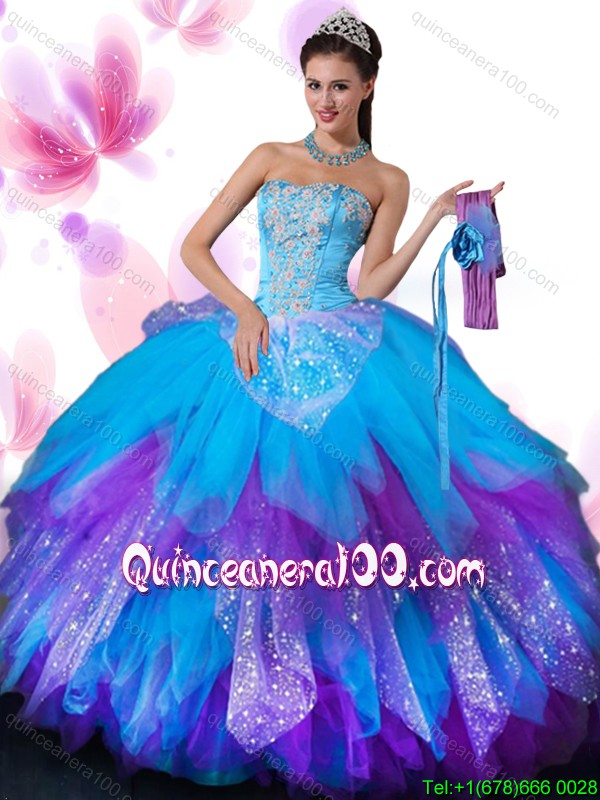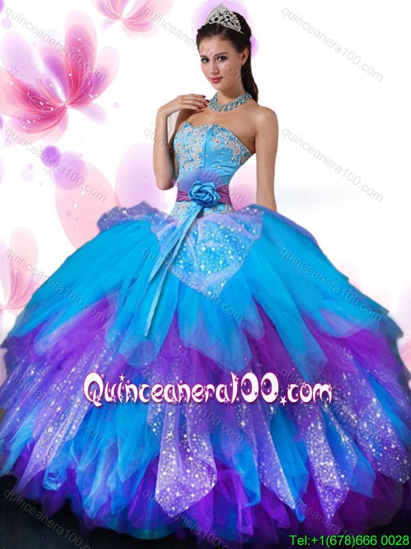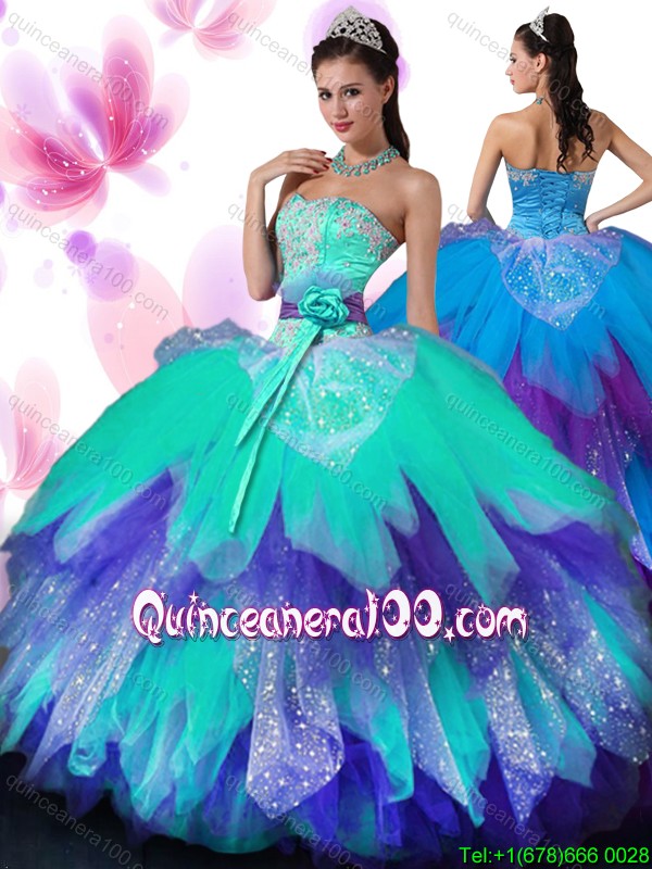 Neckline : SweetheartShown Color : Multi-colorSilhouette : Ball GownsSleeve Length : sleevelessHemline : floor lengthBack Detail : Lace upFabric : TulleEmbellishment : Appliques,Ruffled Layers,Hand Made FlowerOccasion : Military Ball,Sweet 16,QuinceaneraSeason : Spring,Summer,Fall,Winter