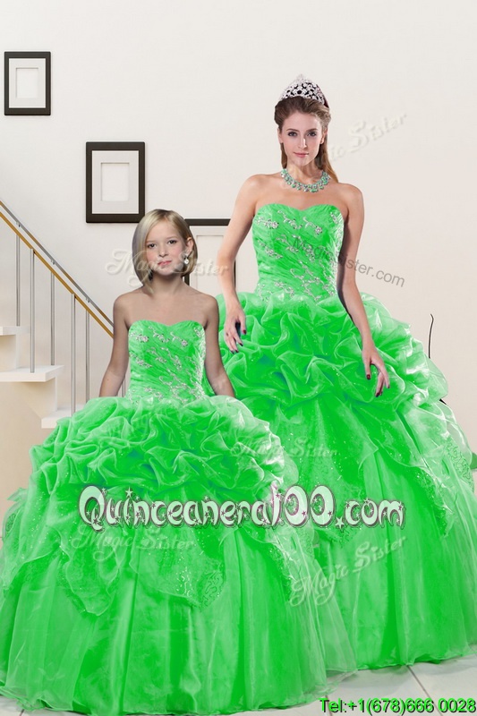 Cheap Spring Green Organza Lace Up Sweetheart Sleeveless Floor Length Quinceanera Dress Beading and Pick Ups