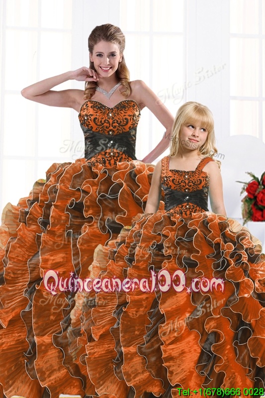 Neckline : SweetheartShown Color : OrangeSilhouette : Ball GownsSleeve Length : sleevelessHemline : floor lengthBack Detail : Lace upFabric : OrganzaEmbellishment : Beading,Appliques,RufflesOccasion : Military Ball,Sweet 16,QuinceaneraSeason : Spring,Summer,Fall,Winter