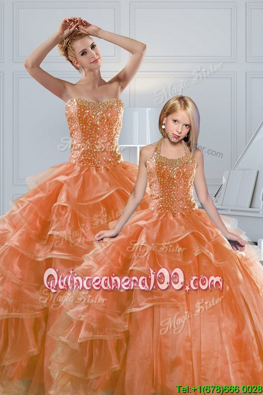 Neckline : SweetheartShown Color : OrangeSilhouette : Ball GownsSleeve Length : sleevelessBack Detail : Lace upFabric : OrganzaEmbellishment : Beading,Ruffled LayersOccasion : Military Ball,Sweet 16,QuinceaneraSeason : Spring,Summer,Fall,Winter