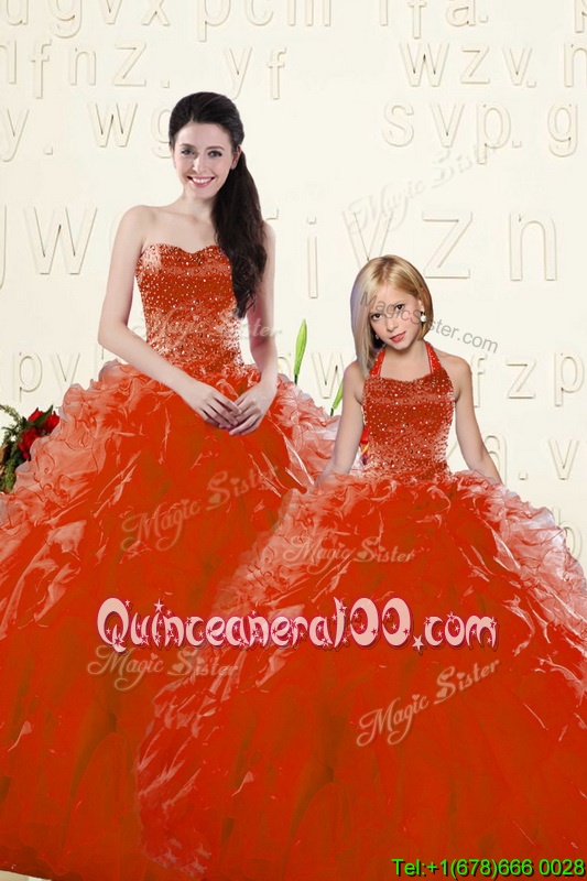 Neckline : SweetheartShown Color : RedSilhouette : Ball GownsSleeve Length : long sleevesHemline : floor lengthBack Detail : Lace upFabric : OrganzaEmbellishment : Beading,RufflesOccasion : Military Ball,Sweet 16,QuinceaneraSeason : Spring,Summer,Winter