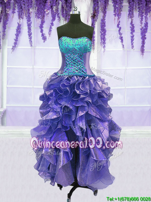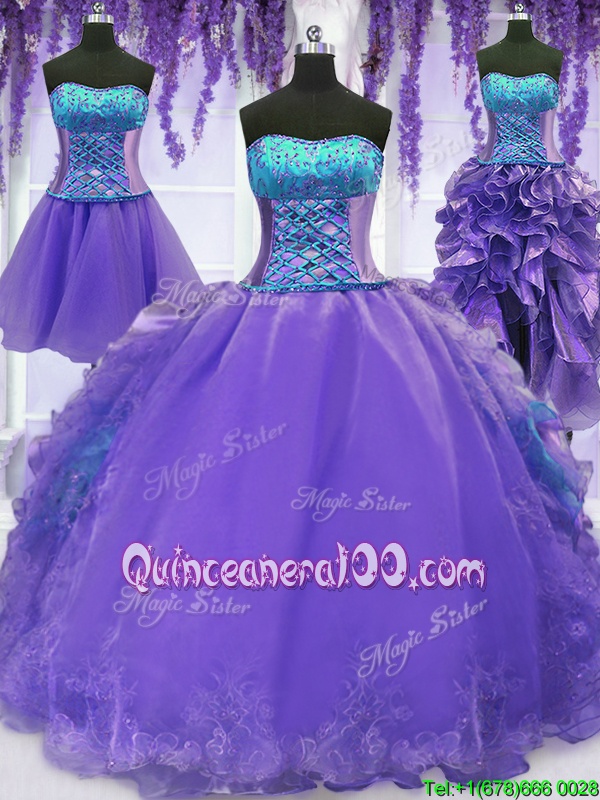Neckline : StraplessShown Color : LavenderSilhouette : Ball GownsSleeve Length : sleevelessHemline : floor lengthBack Detail : Lace upFabric : OrganzaEmbellishment : Embroidery,RufflesOccasion : Military Ball,Sweet 16,QuinceaneraSeason : Spring,Summer,Fall,Winter