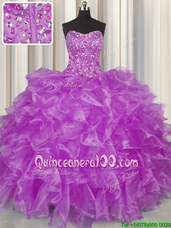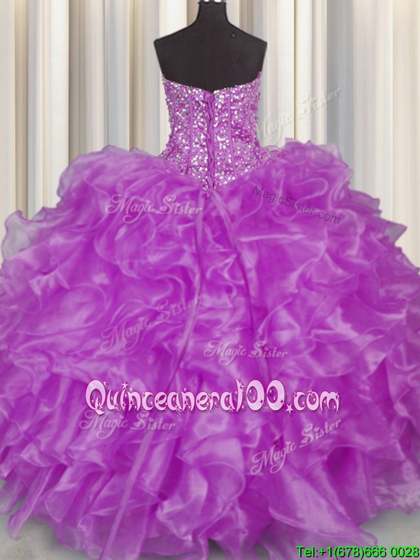 Neckline : StraplessShown Color : PurpleSilhouette : Ball GownsSleeve Length : sleevelessHemline : floor lengthBack Detail : Lace upFabric : OrganzaEmbellishment : Beading,RufflesOccasion : Military Ball,Sweet 16,QuinceaneraSeason : Spring,Summer,Fall,Winter