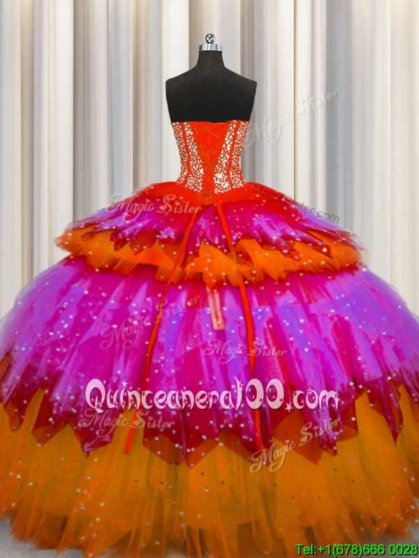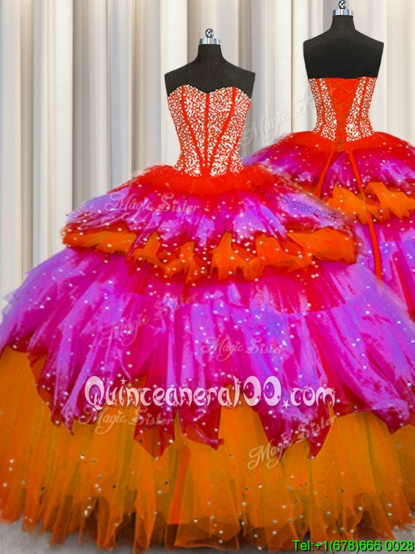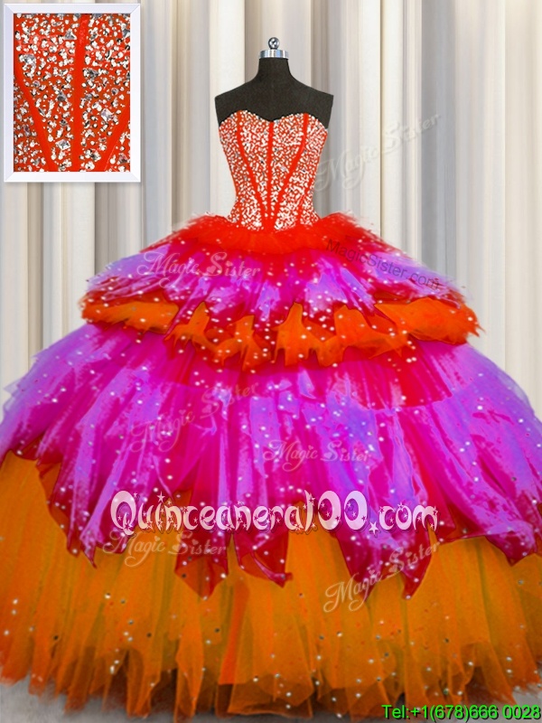 Neckline : SweetheartShown Color : Multi-colorSilhouette : Ball GownsSleeve Length : sleevelessHemline : floor lengthBack Detail : Lace upFabric : TulleEmbellishment : Beading,Ruffles,Ruffled Layers,SequinsOccasion : Military Ball,Sweet 16,QuinceaneraSeason : Spring,Summer,Fall,Winter