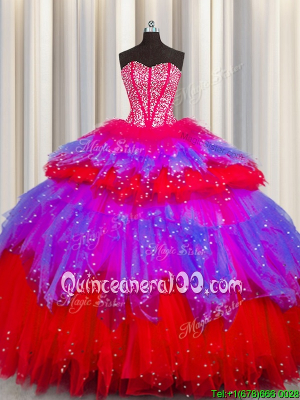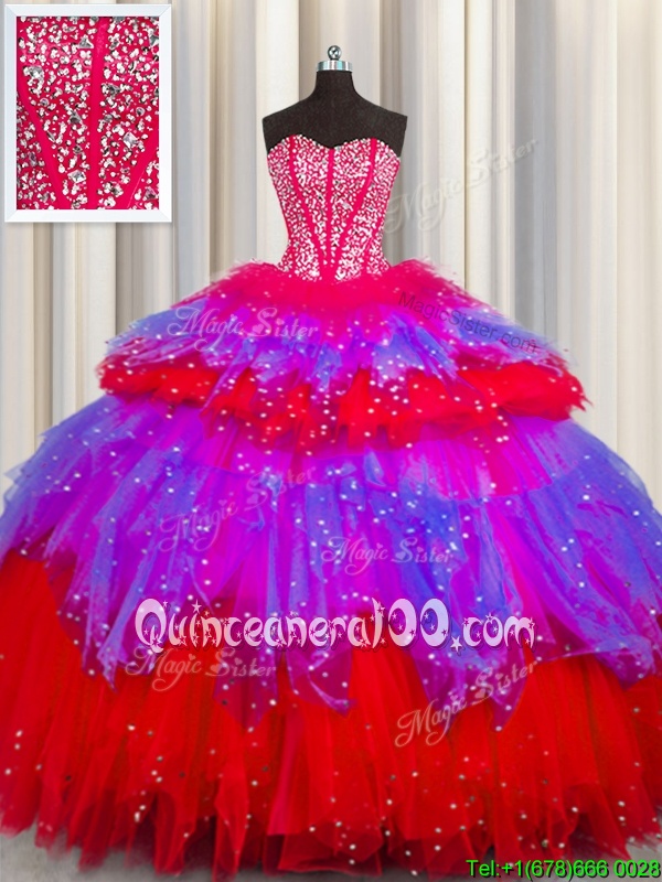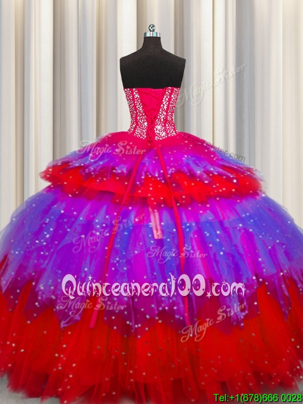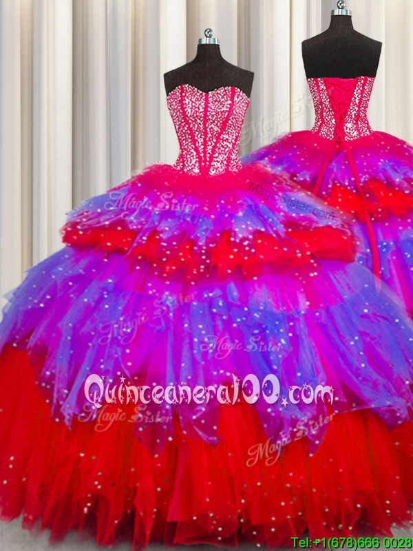 Neckline : SweetheartShown Color : Multi-colorSilhouette : Ball GownsSleeve Length : sleevelessHemline : floor lengthBack Detail : Lace upFabric : TulleEmbellishment : Beading,Ruffles,Ruffled Layers,SequinsOccasion : Military Ball,Sweet 16,QuinceaneraSeason : Spring,Summer,Fall,Winter