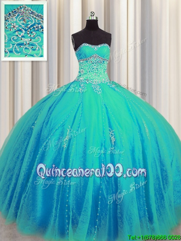 Neckline : SweetheartShown Color : Aqua BlueSilhouette : Ball GownsSleeve Length : sleevelessHemline : floor lengthBack Detail : Lace upFabric : TulleEmbellishment : Beading,AppliquesOccasion : Military Ball,Sweet 16,QuinceaneraSeason : Spring,Summer,Fall,Winter