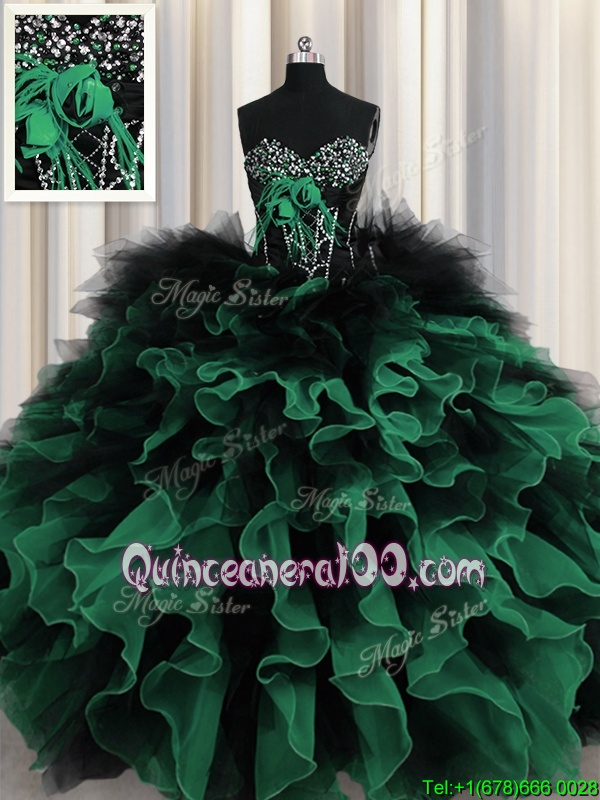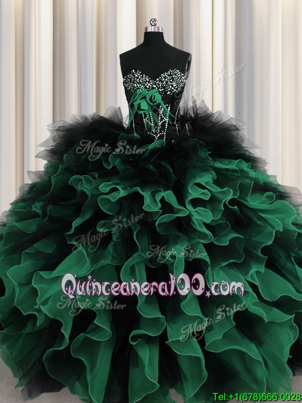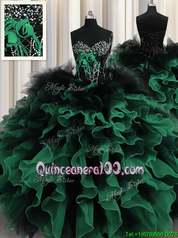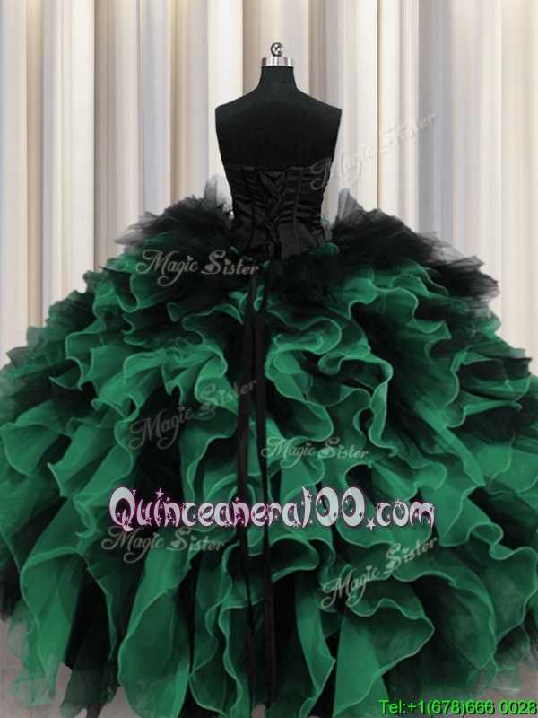 Best Selling Sleeveless Organza and Tulle Floor Length Lace Up Quinceanera Dresses inMulti-color forSpring and Summer and Fall and Winter withBeading and Ruffles