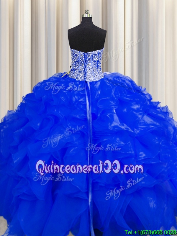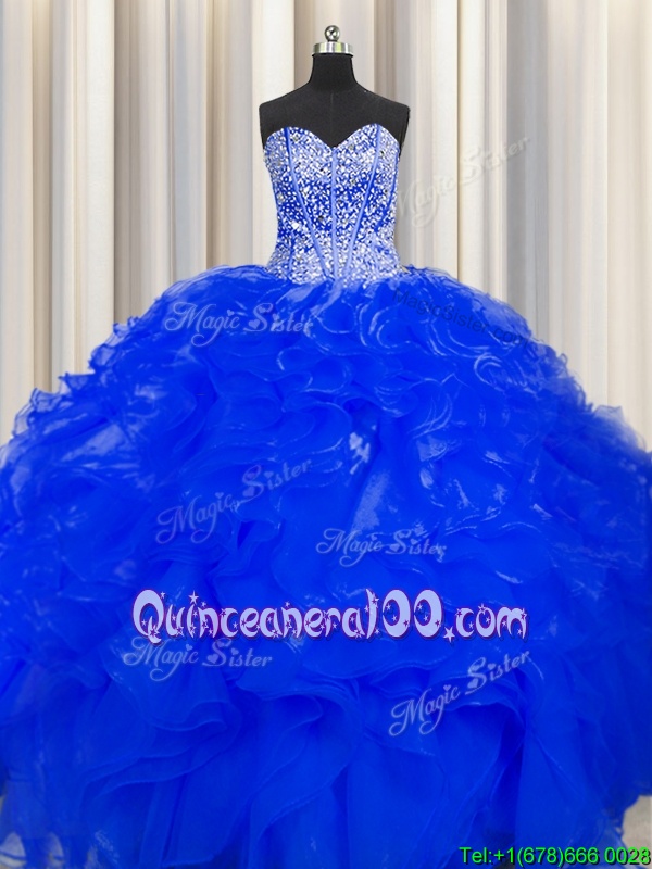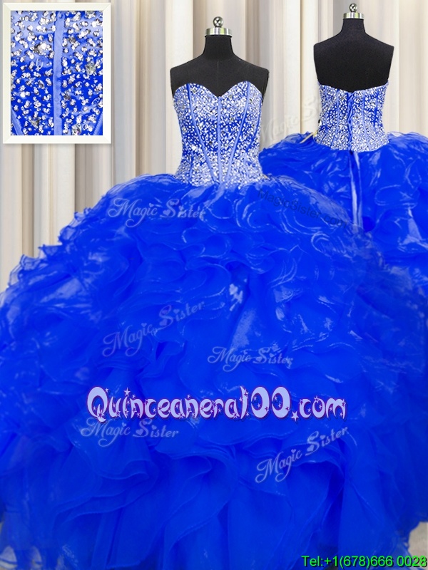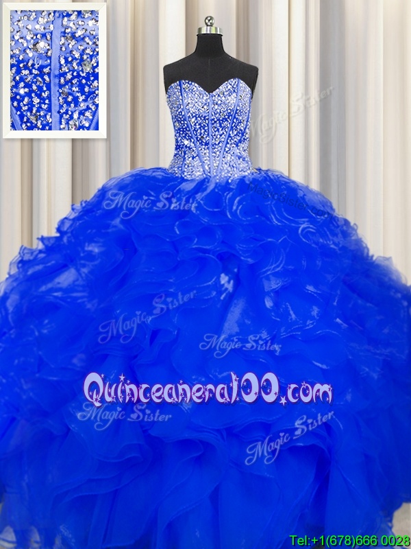 Trendy Visible Boning Beaded Bodice Floor Length Royal Blue 15 Quinceanera Dress Sweetheart Sleeveless Lace Up