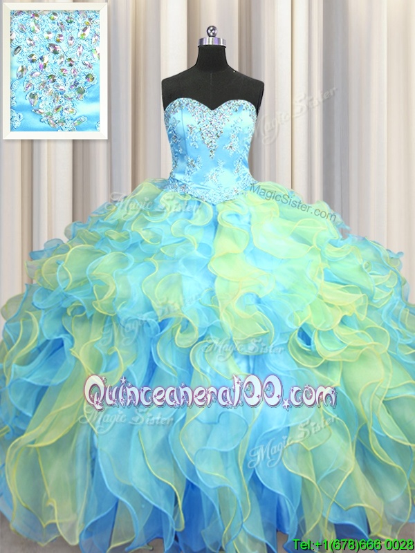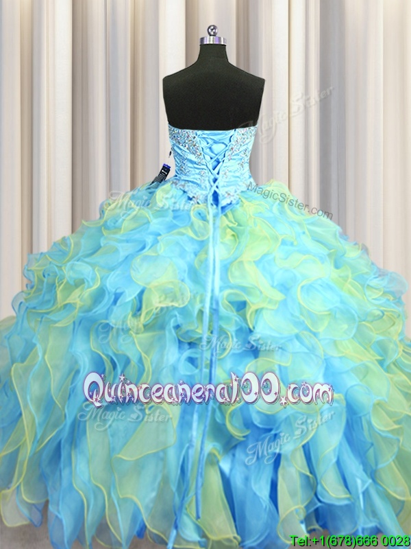 Best Selling Sweetheart Sleeveless Lace Up Sweet 16 Dress Multi-color Organza