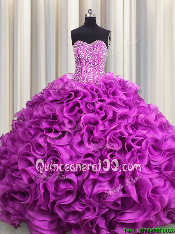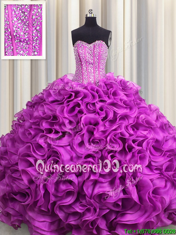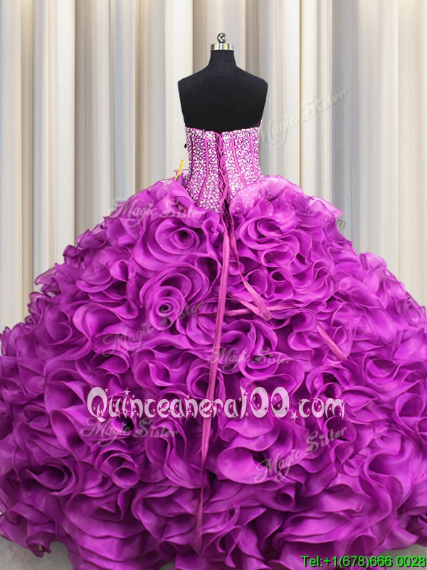 Lovely Visible Boning Sweetheart Sleeveless Lace Up Quinceanera Dresses Fuchsia Organza
