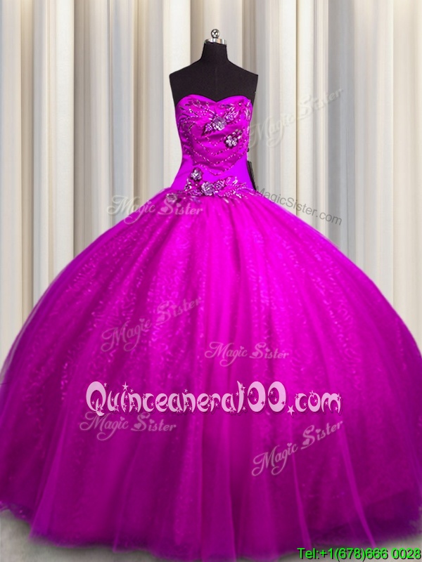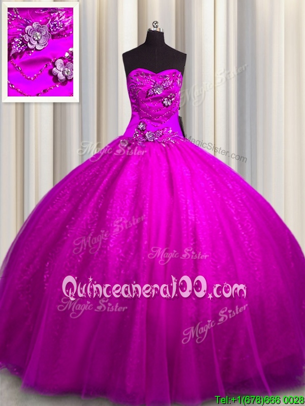 Neckline : SweetheartShown Color : FuchsiaSilhouette : Ball GownsSleeve Length : sleevelessHemline : floor lengthBack Detail : Lace upFabric : Tulle,SequinedEmbellishment : Beading,AppliquesOccasion : Military Ball,Sweet 16,QuinceaneraSeason : Spring,Summer,Fall,Winter
