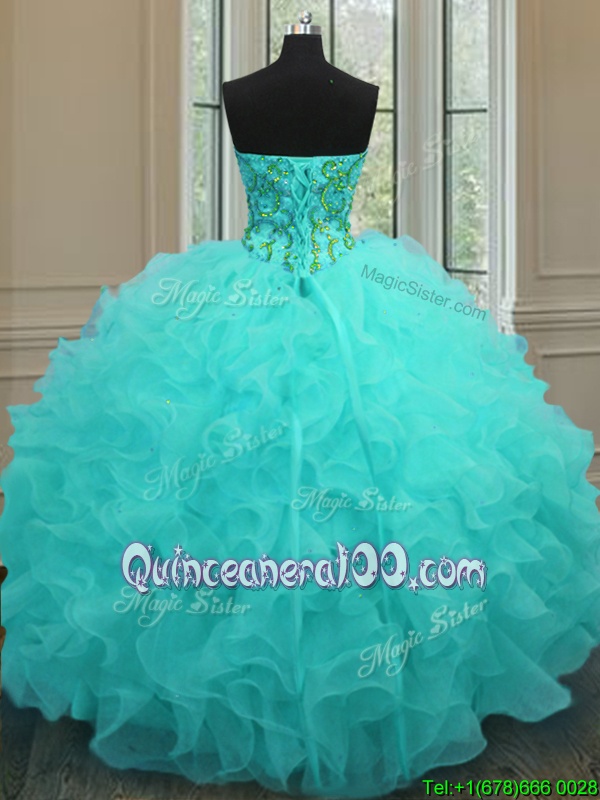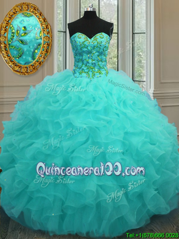 Comfortable Sweetheart Sleeveless Organza Ball Gown Prom Dress Beading and Ruffles Lace Up