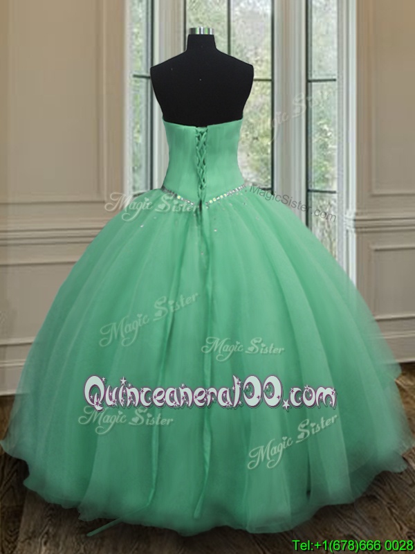 Neckline : SweetheartShown Color : Apple GreenSilhouette : Ball GownsSleeve Length : sleevelessHemline : floor lengthBack Detail : Lace upFabric : OrganzaEmbellishment : BeadingOccasion : Military Ball,Sweet 16,QuinceaneraSeason : Spring,Fall,Winter