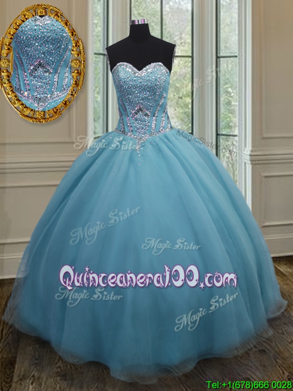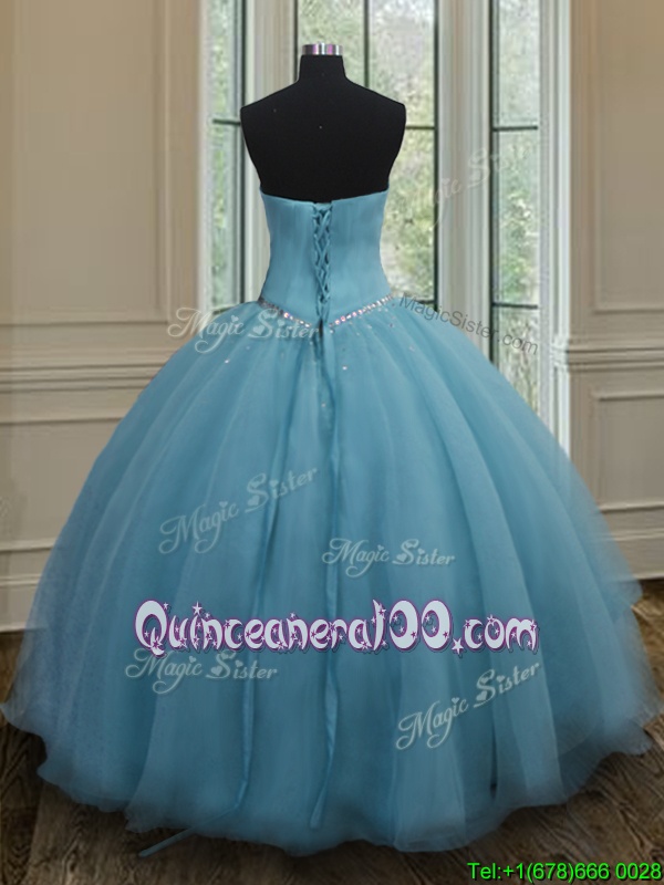 Neckline : SweetheartShown Color : Baby BlueSilhouette : Ball GownsSleeve Length : sleevelessHemline : floor lengthBack Detail : Lace upFabric : OrganzaEmbellishment : BeadingOccasion : Military Ball,Sweet 16,QuinceaneraSeason : Spring,Summer,Fall,Winter