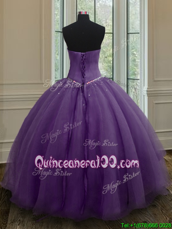 Neckline : SweetheartShown Color : PurpleSilhouette : Ball GownsSleeve Length : sleevelessHemline : floor lengthBack Detail : Lace upFabric : OrganzaEmbellishment : BeadingOccasion : Military Ball,Sweet 16,QuinceaneraSeason : Spring,Summer,Fall,Winter