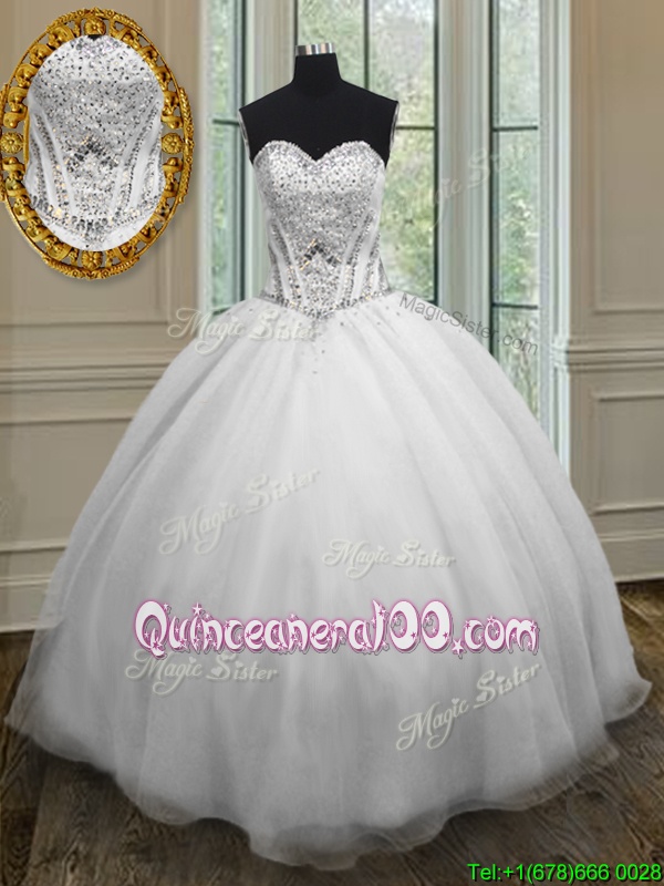 Neckline : SweetheartShown Color : WhiteSilhouette : Ball GownsSleeve Length : sleevelessHemline : floor lengthBack Detail : Lace upFabric : OrganzaEmbellishment : BeadingOccasion : Military Ball,Sweet 16,QuinceaneraSeason : Spring,Summer,Fall,Winter