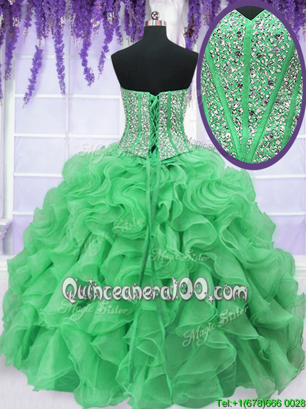 Amazing Sleeveless Beading and Ruffles Lace Up Quinceanera Dresses