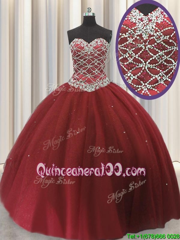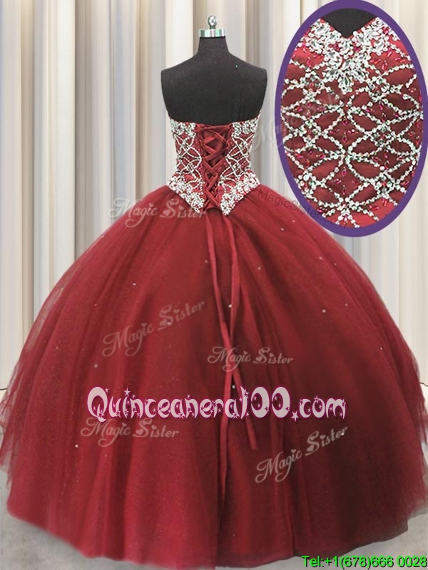 Neckline : SweetheartShown Color : RedSilhouette : Ball GownsSleeve Length : sleevelessHemline : floor lengthBack Detail : Lace upFabric : TulleEmbellishment : Beading,SequinsOccasion : Military Ball,Sweet 16,QuinceaneraSeason : Spring,Summer,Fall,Winter