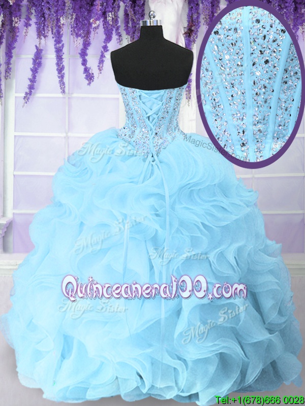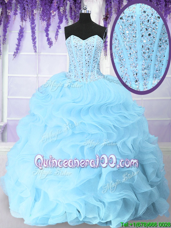 Dynamic Blue Sleeveless Beading and Ruffles Floor Length Sweet 16 Dresses