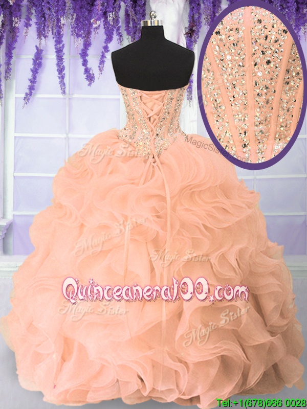 Fabulous Sweetheart Sleeveless 15 Quinceanera Dress Floor Length Beading and Ruffles Orange Organza