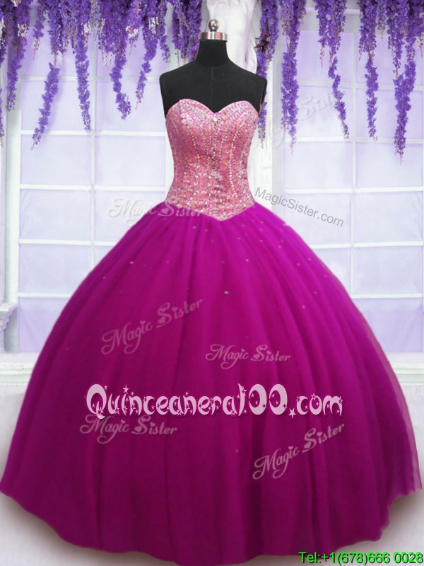 Neckline : SweetheartShown Color : FuchsiaSilhouette : Ball GownsSleeve Length : sleevelessHemline : floor lengthBack Detail : Lace upFabric : TulleEmbellishment : BeadingOccasion : Military Ball,Sweet 16,QuinceaneraSeason : Spring,Summer,Fall,Winter