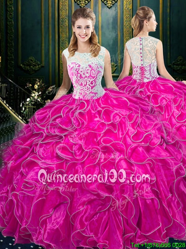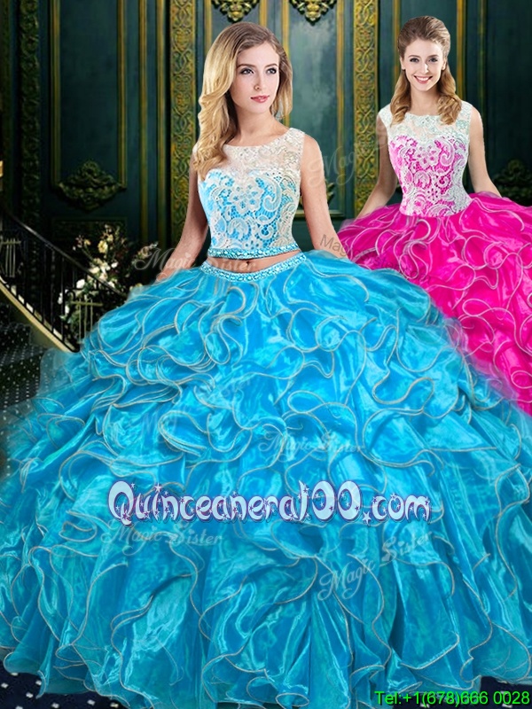 Elegant Baby Blue Two Pieces Scoop Sleeveless Organza Floor Length Zipper Lace and Ruffles Quinceanera Gown