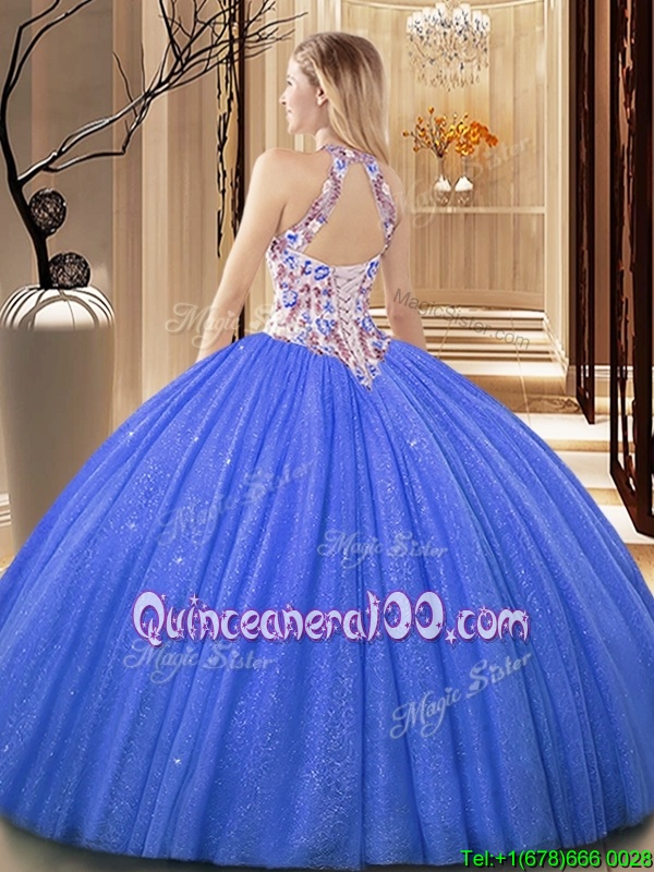 Neckline : ScoopShown Color : LavenderSilhouette : Ball GownsSleeve Length : sleevelessHemline : floor lengthBack Detail : BacklessFabric : TulleEmbellishment : Embroidery,SequinsOccasion : Military Ball,Sweet 16,QuinceaneraSeason : Spring,Summer,Fall,Winter
