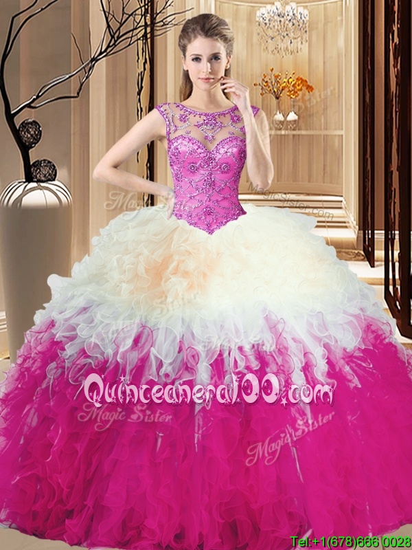 Neckline : High-neckShown Color : Rose Pink Silhouette : Ball GownsSleeve Length : sleevelessHemline : floor lengthBack Detail : BacklessFabric : TulleEmbellishment : Beading,RufflesOccasion : Prom,Military Ball,Sweet 16,QuinceaneraSeason : Spring,Summer,Fall,Winter