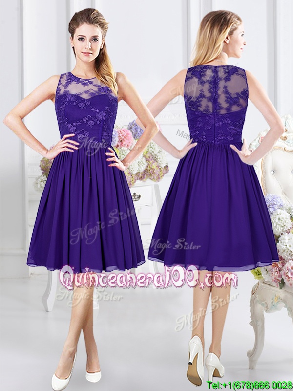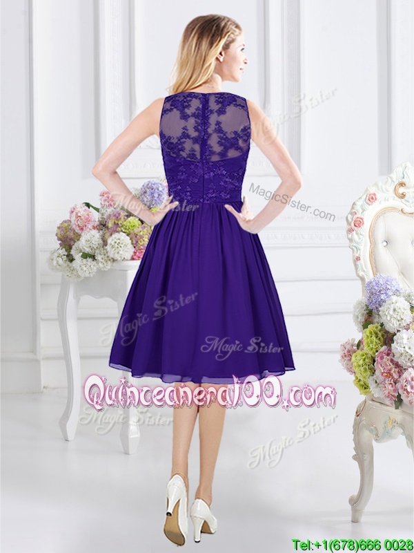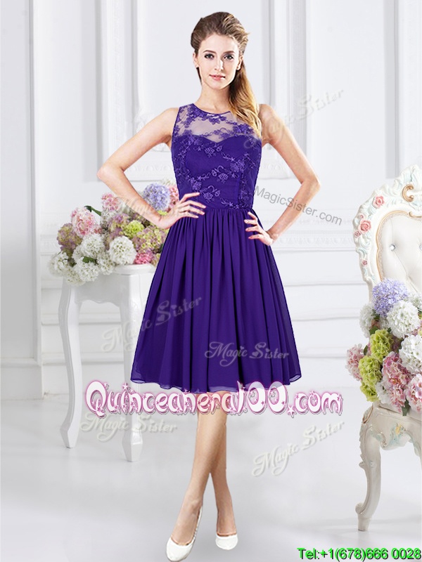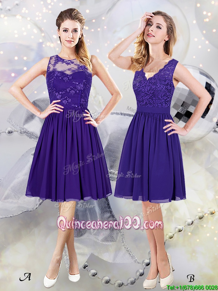 Neckline : ScoopShown Color : PurpleSilhouette : EmpireSleeve Length : sleevelessHemline : knee lengthBack Detail : ZipperFabric : ChiffonEmbellishment : LaceOccasion : Prom,Party,Wedding PartySeason : Spring,Summer,Fall