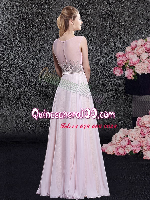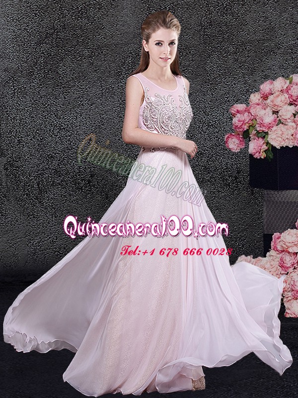 Neckline : ScoopShown Color : PinkSilhouette : EmpireSleeve Length : sleevelessHemline : floor lengthBack Detail : ZipperFabric : ChiffonEmbellishment : BeadingOccasion : Prom,Party,Military Ball,Wedding PartySeason : Spring,Summer,Fall,Winter